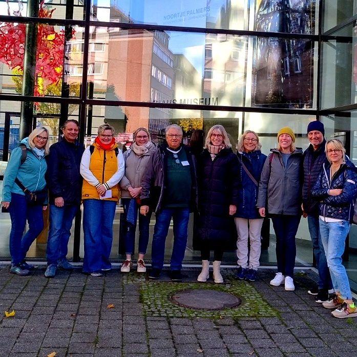 Hier sieht man den Stadt- und Wanderführer Jürgen QuASS-MEURER aus Hagen. Er bringt Ihnen a) die Innenstadt, den Stadtteil Wehringhausen und auch die schönen Wälder Hagens und Hohenlimburgs näher. Obig mit Gruppe aus Hessen Bad Arolsen im EmiEmil-Schumacher-Mueseum.